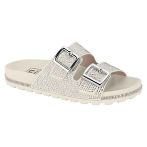Com o solado levemente tratorada e detalhes em strass na correia.