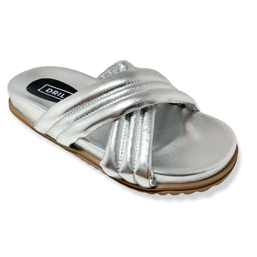 Sandália Papete Birkin Feminina Prata Metalizada Tiras Cruzadas - 39 - Prata