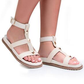 Sandália Papete BK06 Tiras Trama Tachas e Studs Off White 2646 - 36 - Bege