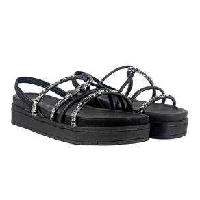VIA UNO Sobre a marca: A Via Uno acompanha as principais tendências e lançamentos da moda mundial com o lifestyle urbano e moderno, oferecendo calçados versáteis, diversos estilos e muito conforto para a mulher contemporânea. Sandália Flat, estilo papete, com tiras mescladas com strass e traseira elástica. Calçado para mulher moderna que não abre mão de conforto e beleza em seu dia-a-dia.
