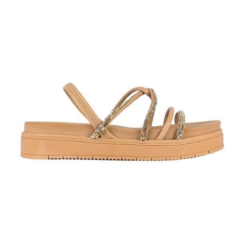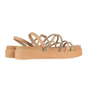 VIA UNO Sobre a marca: A Via Uno acompanha as principais tendências e lançamentos da moda mundial com o lifestyle urbano e moderno, oferecendo calçados versáteis, diversos estilos e muito conforto para a mulher contemporânea. Sandália Flat, estilo papete, com tiras mescladas com strass e traseira elástica. Calçado para mulher moderna que não abre mão de conforto e beleza em seu dia-a-dia.