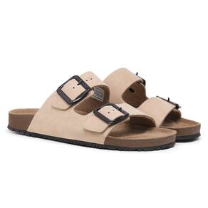 Sandalia Papete Couro Fivela de Metal Com Regulagem Moderna Calce Facil Confortavel - 38 - Bege