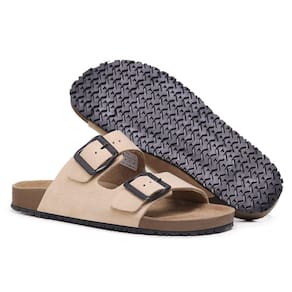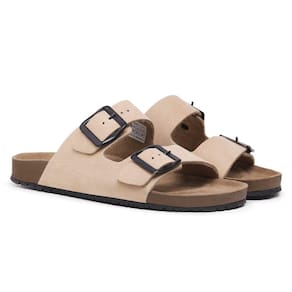 Sandalia Papete Couro Fivela de Metal Com Regulagem Moderna Calce Facil Confortavel - 37 - Bege