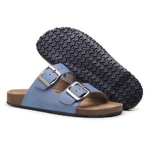 Sandalia Papete Couro Fivela de Metal Com Regulagem Moderna Calce Facil Confortavel - 33 - Azul Petróleo