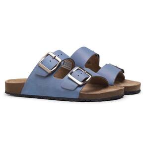 Sandalia Papete Couro Fivela de Metal Com Regulagem Moderna Calce Facil Confortavel - 41 - Azul Petróleo