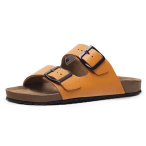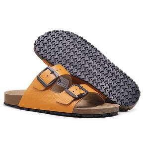 Sandalia Papete de Couro Unissex Fivela Regulavel Basica Palmilha Anatomica Conforto - 38 - Mostarda