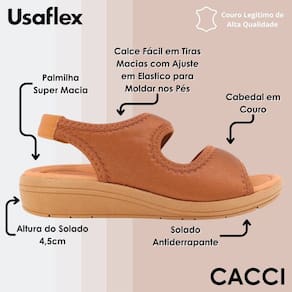 Durabilidade e Estilo: Fabricada com materiais de alta qualidade, esta sandália papete é resistente e construída para resistir ao uso diário. Seu acabamento cuidadoso e detalhes bem trabalhados refletem a excelência artesanal da Usaflex, garantindo estilo e durabilidade.