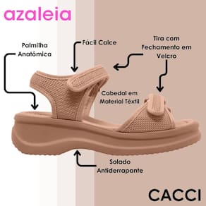 A Azaleia Vera é confeccionada em material têxtil, possui regulagem em fita aderente e palmilha anatômica extra macia, para melhor estabilidade e conforto. Fácil de calçar e super confortável, essa papete é a opção perfeita pra caminhar com você por onde for.
