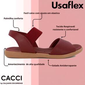 O diferencial está na tecnologia de conforto oferecida pela marca Usaflex, que se destaca pela preocupação com o bem-estar dos pés. A palmilha anatômica e acolchoada proporciona uma sensação agradável ao caminhar, enquanto a sola aderente oferece estabilidade e segurança em diferentes tipos de superfícies.