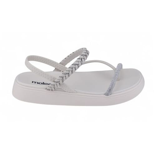 Sandália Papete Feminina Moleca 5499.106 Brilho Strass - Branco - 34