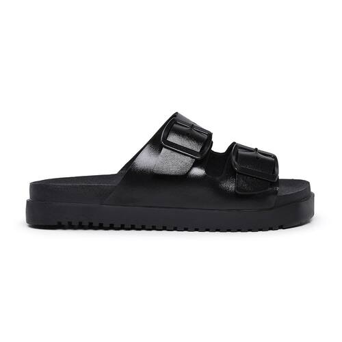 Sandália Papete Feminina Slide Preta com Fivelas - 37 - Preto