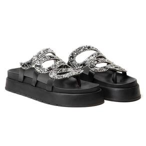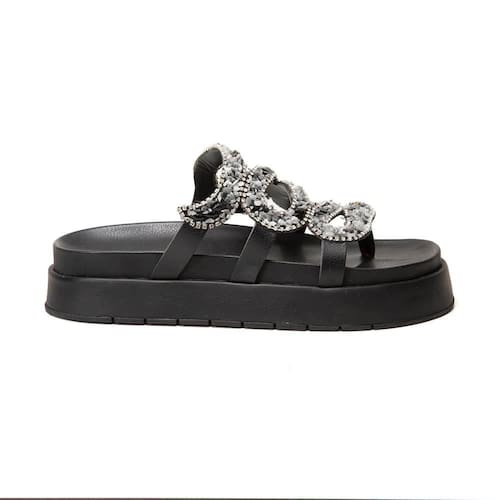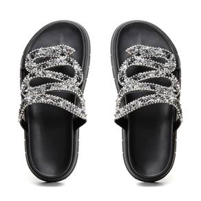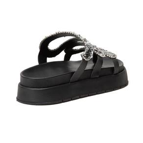 Sandália Papete Feminina Solado Flatform Cobra Pedraria - 34 - Preto