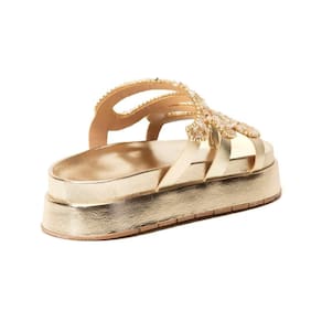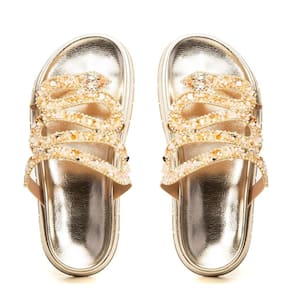 Sandália Papete Feminina Solado Flatform Cobra Pedraria - 39 - Amarelo Ouro
