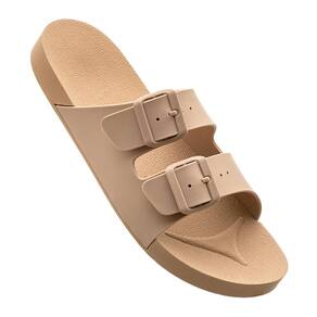 Sandália Papete Feminina Solado Flatform Fivela Conforto - 42 - Bege