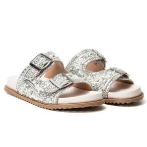 Sandália Papete Feminina Solado Flatform Fivela Pedraria - 33 - Prata