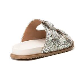 A Sandália Feminina é produzida por material de alta qualidade, garantindo maciez, durabilidade e leveza. Possui solado em micro expandido emborrachado. Modelo bico Redondo, super em alta e tendência. Sua melhor companhia do dia a dia, oferecendo conforto no seu caminhar. Possui cabedal pedra natural de alta qualidade, cada pedra foi cuidadosamente selecionada para garantir brilho e durabilidade. Duas fivelas de metal, projetadas para complementar o design.