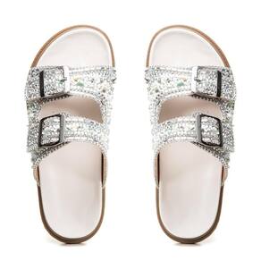 Sandália Papete Feminina Solado Flatform Fivela Pedraria - 38 - Prata