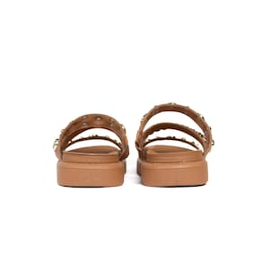 Feito com materiais de alta qualidade, este tamanco combina estilo sofisticado com o máximo de bem-estar para seus pés. O design com material macio proporciona durabilidade e um toque suave, enquanto as tiras permitem um ajuste perfeito. Os detalhes com aplicação de metais dourados e correntes, conferem um visual moderno e robusto.