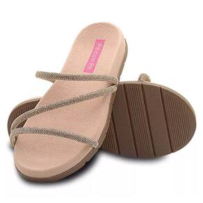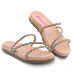 Esta sandália traz um visual delicado e sofisticado, com tiras finas decoradas com cristais que adicionam um toque de brilho ao modelo. A combinação de cores neutras e o design moderno garantem elegância e versatilidade para diversas ocasiões. O conforto é uma das características principais, com uma sola anatômica que proporciona bem-estar durante o uso. Ideal para um passeio ao ar livre ou para um evento mais casual, a sandália oferece praticidade e estilo ao mesmo tempo.