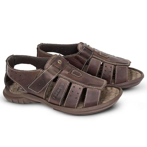 Sandália estilo Papete Masculina de Couro, com Palmilha de P.U. revestida em Camurça. Indicado para finais de semanas em seus momentos de lazer.