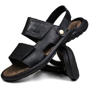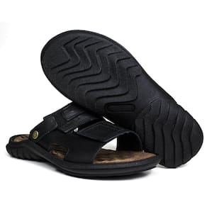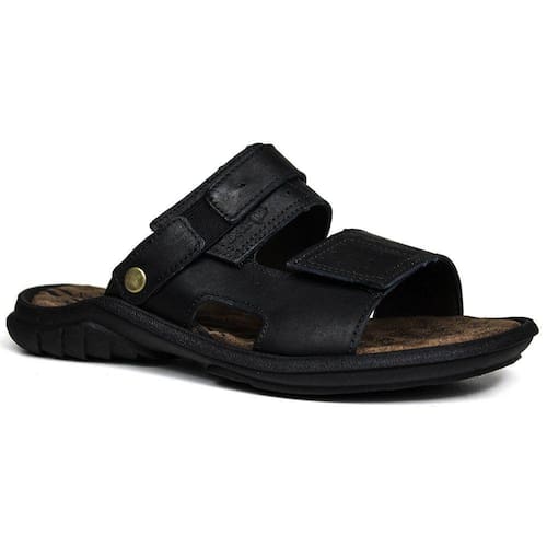 Sandália Papete Masculina de Couro Preto 3500 - 43 - Preto