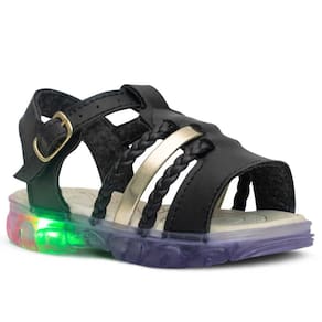 Confeccionado em sintético, com forração super confortável e palmilha em borracha EVA de excelente qualidade. Possui fechamento com fivela e solado antiderrapante com LED (luzes).