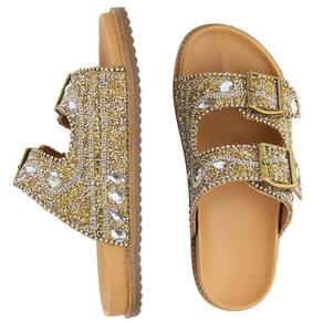 Sandália Papete Rasteira Pedrarias Fivela Ajustável Feminina Moda Fashion Passeio Sola Borracha - 36 - Amarelo Ouro