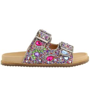 Sandália Papete Rasteira Pedrarias Fivela Ajustável Feminina Moda Fashion Passeio Sola Borracha - 33 - Multicolor
