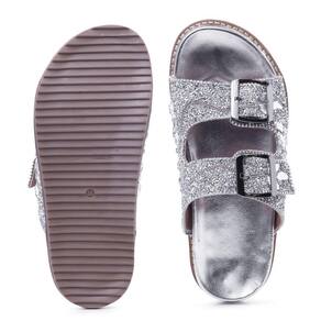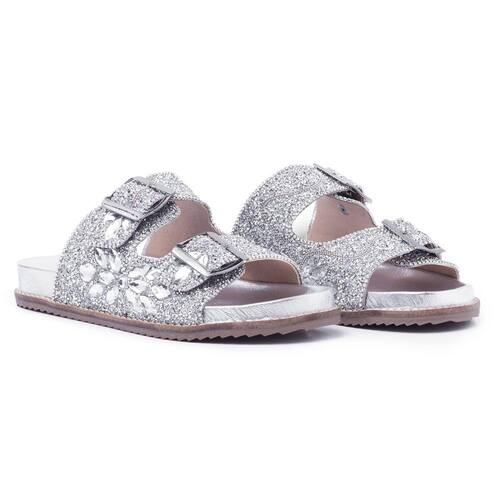 Sandália Papete Rasteira Pedrarias Fivela Ajustável Feminina Moda Fashion Passeio Sola Borracha - 34 - Prata