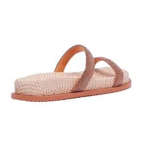 Sandália Papete feminina, confeccionada em têxtil e acabamento metalizado. . As sandálias rasteiras são uma opção de calçado feminino que combina conforto com estilo. Elas são ideais para dias quentes e eventos casuais, oferecendo uma alternativa prática aos sapatos de salto alto.