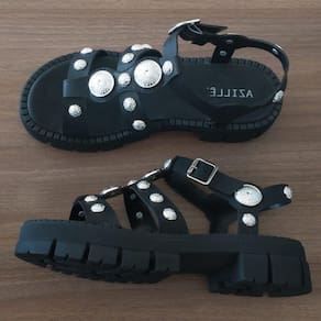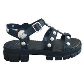 Sandalia papete da azillê com tachas nas correias esola tratorada é mais uma vantagem dessa sandália.