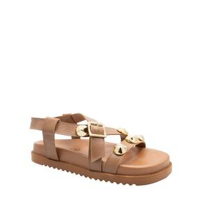 Sandália estilo papete com tiras largas e aplicação de maxi tachas metalizadas que trazem um toque moderno e despojado ao visual. O fechamento por fivela ajustável garante praticidade e melhor encaixe nos pés. A palmilha é macia e anatômica, oferecendo conforto prolongado, enquanto o solado tratorado proporciona estabilidade e aderência. Um modelo versátil e cheio de personalidade, perfeito para compor produções casuais com estilo e atitude. Referência 216 Solado com aproximadamente 1 cm