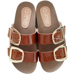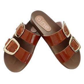 Sandalia Papete Verniz Couro Numerações Grandes Confortável - 43 - Marrom Chocolate