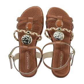 Sandália Piccadilly Napa Ocre/Ouro - Marrom - 36