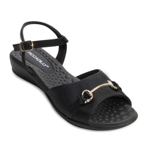 Nome: Sandália Piccadilly PD24-50036. Gênero: Feminino. Indicado Para: Dia a Dia. Ocasião: Casual. Material Externo: Alternativo. Material Interno: Têxtil macio. Fechamento: Tira com fivela. Detalhe: Peça dourada no cabedal. Palmilha: EVA anatômica e macia. Solado: Borracha antiderrapante. Altura do Salto: Baixo 2,5 cm de altura. Peso do Produto: 444 g (o peso varia de acordo com a numeração). Garantia do Fabricante: Contra defeito de fabricação. Origem: Nacional. Código Produto: 02430547. Marca: Piccadilly.
