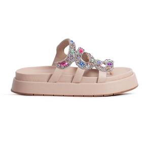 Sandália Plataforma Flat Feminina Pedrarias Chatons Moda Casual Passeio Dia a Dia Mulher Elegante - 39 - Rosa Claro