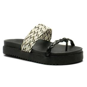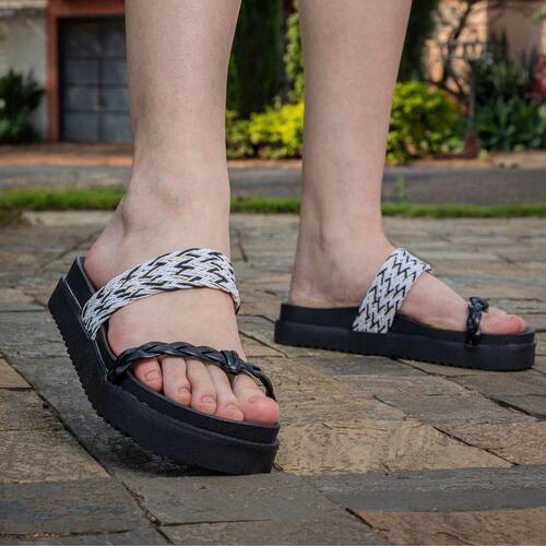 Sandália Plataforma Macia Papete Tressê Feminina com Tiras Trançadas Preto - 36 - Preto