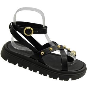 Sandália Plataforma Moleca Tiras Aplique Metal Feminina - 39 - Preto