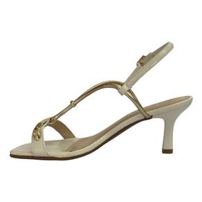 A sandália de salto fino é uma peça elegante e atemporal, ideal para compor visuais sofisticados com leveza e estilo. Este modelo apresenta salto fino médio de aproximadamente 6,5 cm, que valoriza a silhueta e proporciona conforto na medida certa. Confeccionada em material sintético de alta qualidade, possui tiras finas e detalhes em dourado que formam um design moderno e delicado, realçando a feminilidade e o charme da peça. O fechamento lateral em fivela com cinco opções de regulagem garante um encaixe seguro e personalizado. Versátil e refinada, é a escolha perfeita para festas, eventos e ocasiões formais.