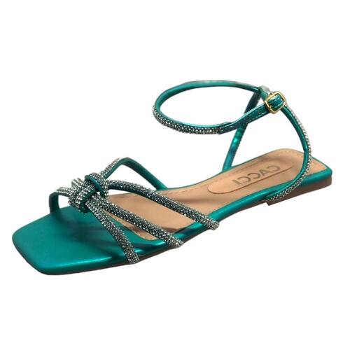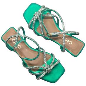 Sandália Rasteira Cacci com Strass Conforto - Verde - 34