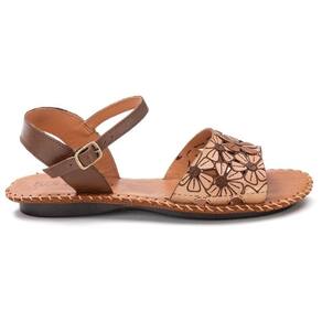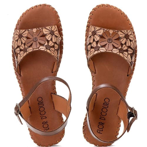Sandalia Rasteira Conforto em Couro Desenho de Flor Feminina Para Trabalho Confortavel Macia - 37 - Marrom