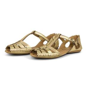 Sandalia Rasteira Conforto Feminina Couro Salto Baixo Fechamento Ziper e Fivela - 39 - Amarelo Ouro