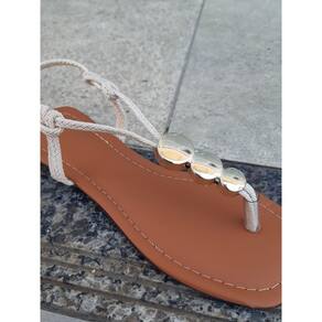 Sandália Feminina Rasteira Flat detalhe metalizado nas cores prata e bege palha são a aposta mais do que certeira para encarar a rotina com estilo! Use com t-shirt ou camisa, além de acessórios maxi. O modelo é garantia de muito conforto e praticidade. Este produto apresenta as seguintes características: Material Externo: Sintético - Material Interno: Sintético - Formato do Calçado: Quadrado - Tipo de Salto: Rasteira - Altura do Salto: Baixo - Estilo: Casual - Ocasião: Dia a Dia Forma: Normal a pequena - pegar tamanho maior que o de costume. MEDIDAS PALMILHA 34 22,8CM 35 23,5CM 36 24CM 37 25CM 38 25,5CM 39 26CM Marca: QR Shoes Marca: QR Shoes