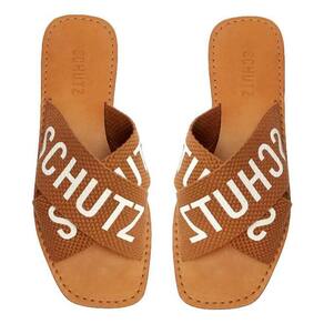 A sandália rasteira clássica da Schutz recebe um upgrade moderno com tiras texturizadas, elevando o estilo do calçado..