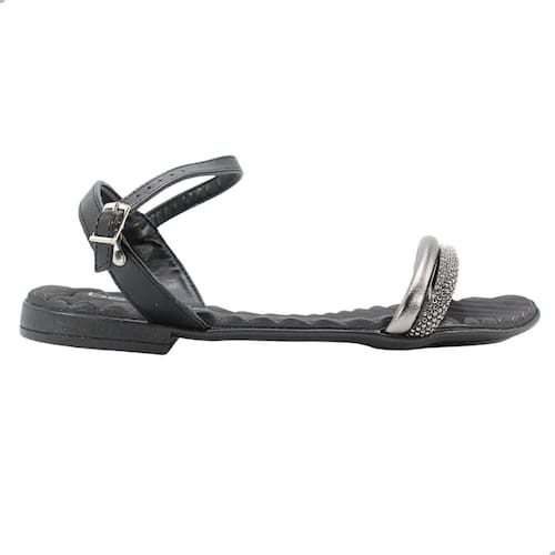 Sandália Rasteira Feminina Beira Rio Napa Turim Metalizado Preto Strass Grafite - 39 - Preto