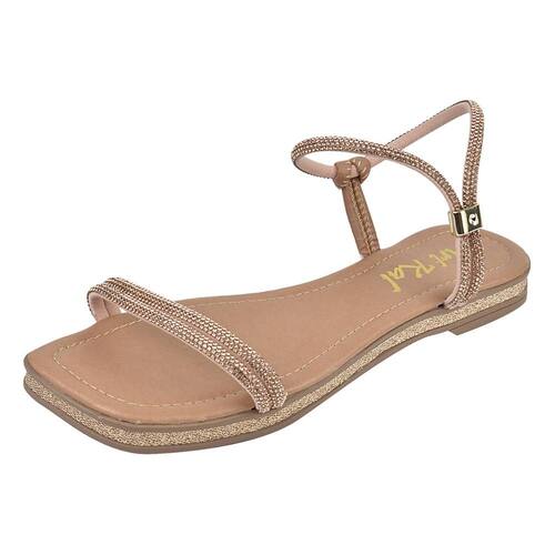 Sandália Rasteira Feminina com Tiras de Cristais Rose - Rosa Claro - 37