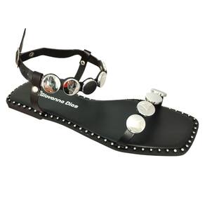 Sandália Rasteira Feminina Giovanna Dias Delicada com Detalhes Redondos Prata na Tira J565038