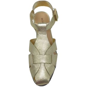 Cabedal com tiras cruzadas que garantem visual metalizado elegante