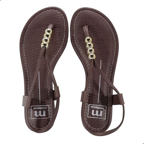 Sandália Rasteira Feminina Moleca Milano Napa Turim Geométrico Roma Chocolate - 33 - Marrom