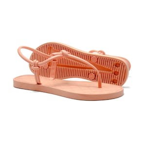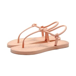 Sandalia Rasteira Flat Feminina Calce Facil Moda Verão Slim Macia Tiras Finas - 34 - Salmão